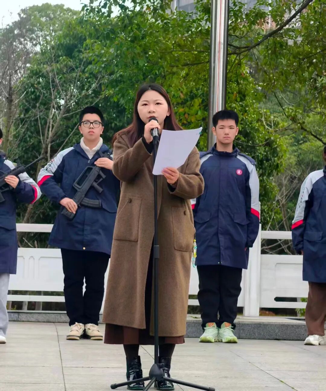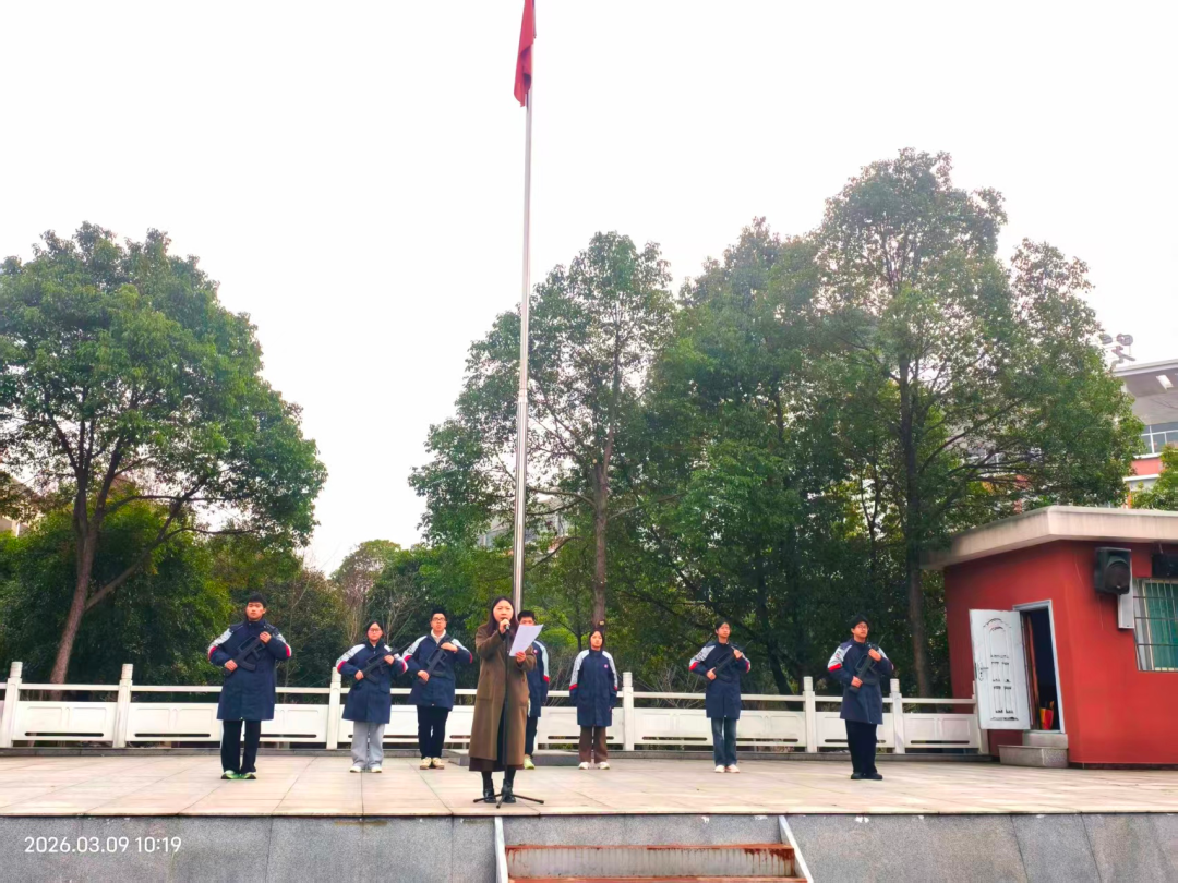 2026年3月9日上午,鄂南高级中学操场上,全体学生整齐列队,参加每周例行的升旗仪式。在庄严的国歌声中,五星红旗冉冉升起,随后,一场别开生面的法治宣讲活动在此拉开帷幕。