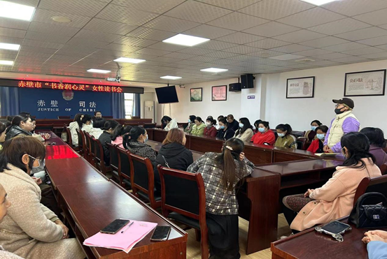 赤壁市司法局组织全市58名女性社矫对象开展“书香润心灵”主题教育读书活动。采用“读书会+心得分享”的形式,司法局分管领导姚华发起阅读倡议并重点讲述《家书中的家风故事》中关于家风、家书的片段,社区矫正对象互相交流,分享自己的所思所悟所想。