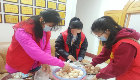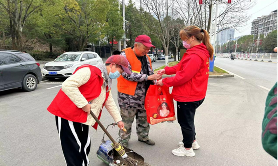 担任志愿者的社矫对象在赤马港街道大桥社区爱心粥屋,提前精心准备好的鸡蛋、矿泉水、毛巾生活物资,发放给环卫工人。活动现场,矫正对象们一边向环卫工人发放物资,一边向他们科普相关法律知识,叮嘱环卫工人在工作中要时刻注意安全。