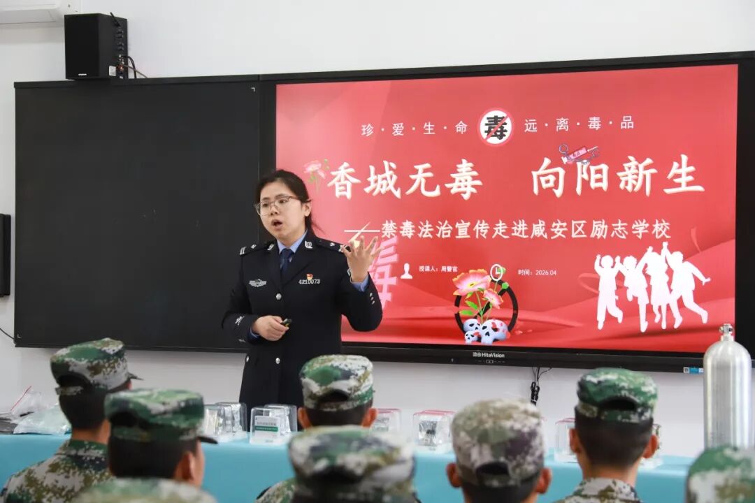 4月1日,“香城无毒 向阳新生”禁毒法治宣传活动在咸安区励志学校正式启动。此次活动由咸宁市禁毒办、咸宁市强制隔离戒毒所、咸安区公安分局、咸安区司法局、桂花镇社区戒毒康复中心联合主办,咸安区励志学校全体师生全程参与,共同接受一场专业、深刻的禁毒法治教育。