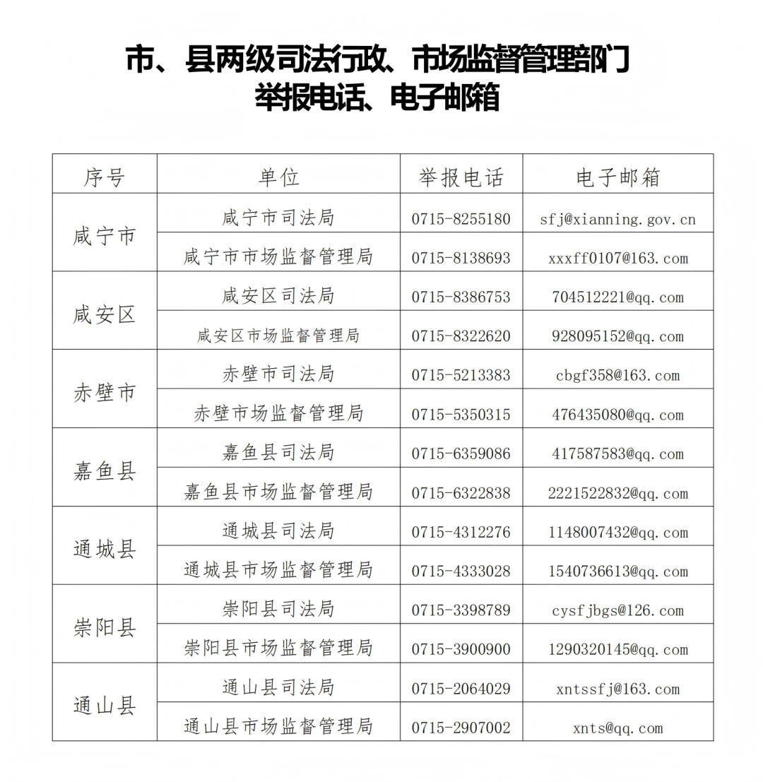 (二)电子邮箱举报。可将问题线索发送至市、县两级司法局、市场监督管理局电子邮箱(邮件主题请注明“问题线索”)。