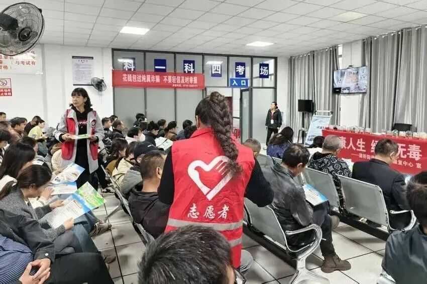 11月10日,赤壁市蒲圻街道社区戒毒康复中心前往赤强汽车服务有限公司,借学员集中参加科目一考试的契机,开展“沉浸式+互动式”拒绝毒驾禁毒宣传活动。