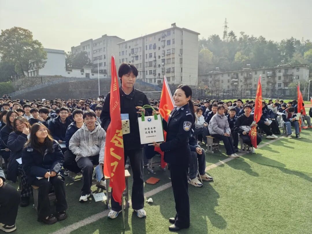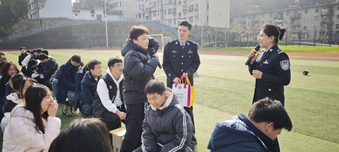 “同学们,你们见过这种‘气球’吗?它正在悄悄吃掉你们的笑脸!”“新型毒品常伪装成奶茶、巧克力,大家一定要提高警惕!”民警结合高中生的认知特点,以生动的语言、真实的案例、沉浸式的情景模拟,揭开“笑气”“上头电子烟”等成瘾性物质的伪装面纱,为学生们普及毒品预防知识、传授防诈技巧以及如何预防校园欺凌。在互动竞答环节,学生们踊跃参与,现场火爆,小礼品的发放更让大家在轻松的氛围中收获满满,一问一答间远离毒品的种子,在千余颗心灵深处悄然扎根。